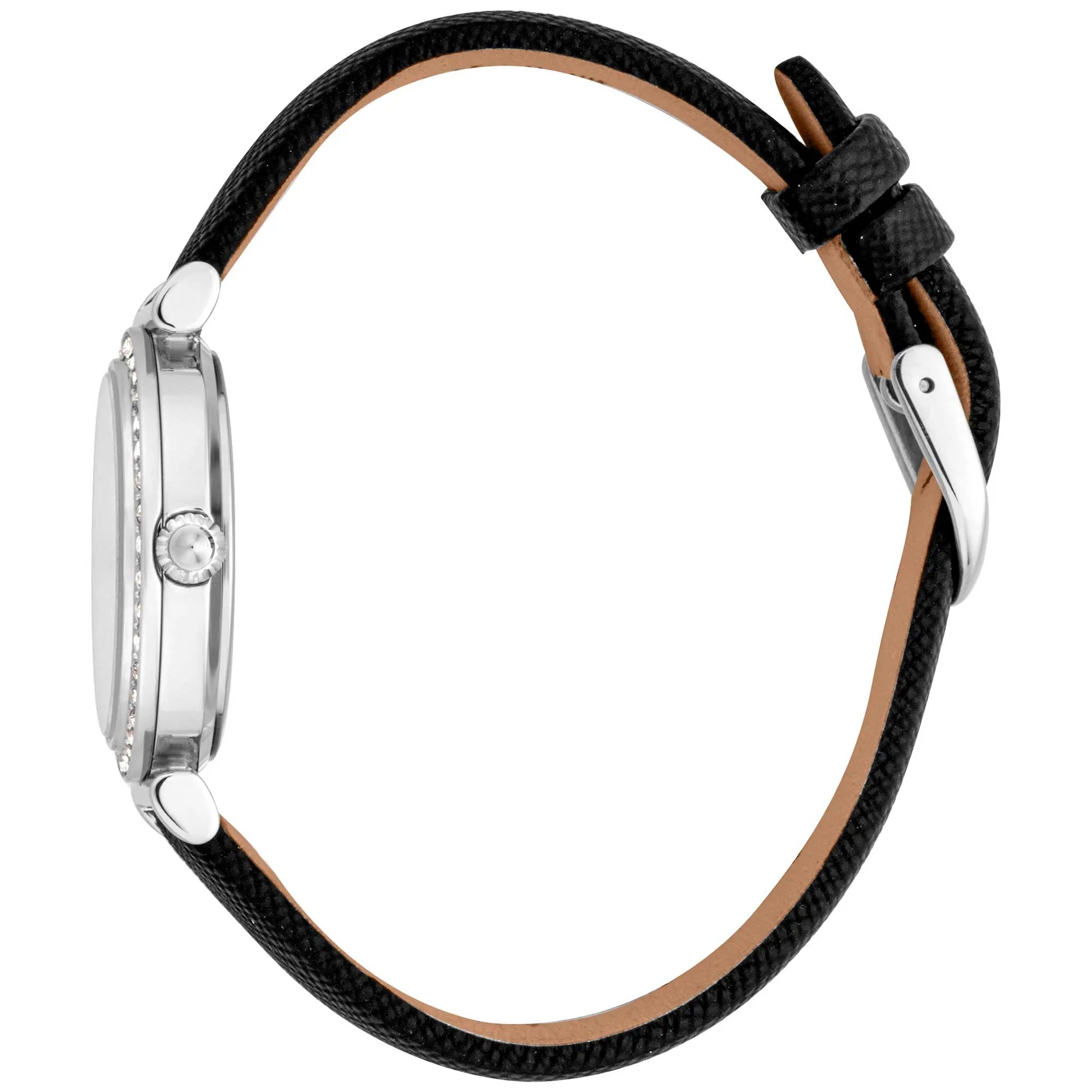 Ignite a sleek, modern vibe with this sophisticated silver grey stainless steel casing complemented by a textured black leather strap, embodying urban elegance and understated luxury. A subtle shimmer of zircon stones captures fleeting light, evoking a tactile sense of refinement and movement. Designed for confident moments and stylish occasions, it promises to elevate every ensemble with effortless poise and a touch of refined attitude.